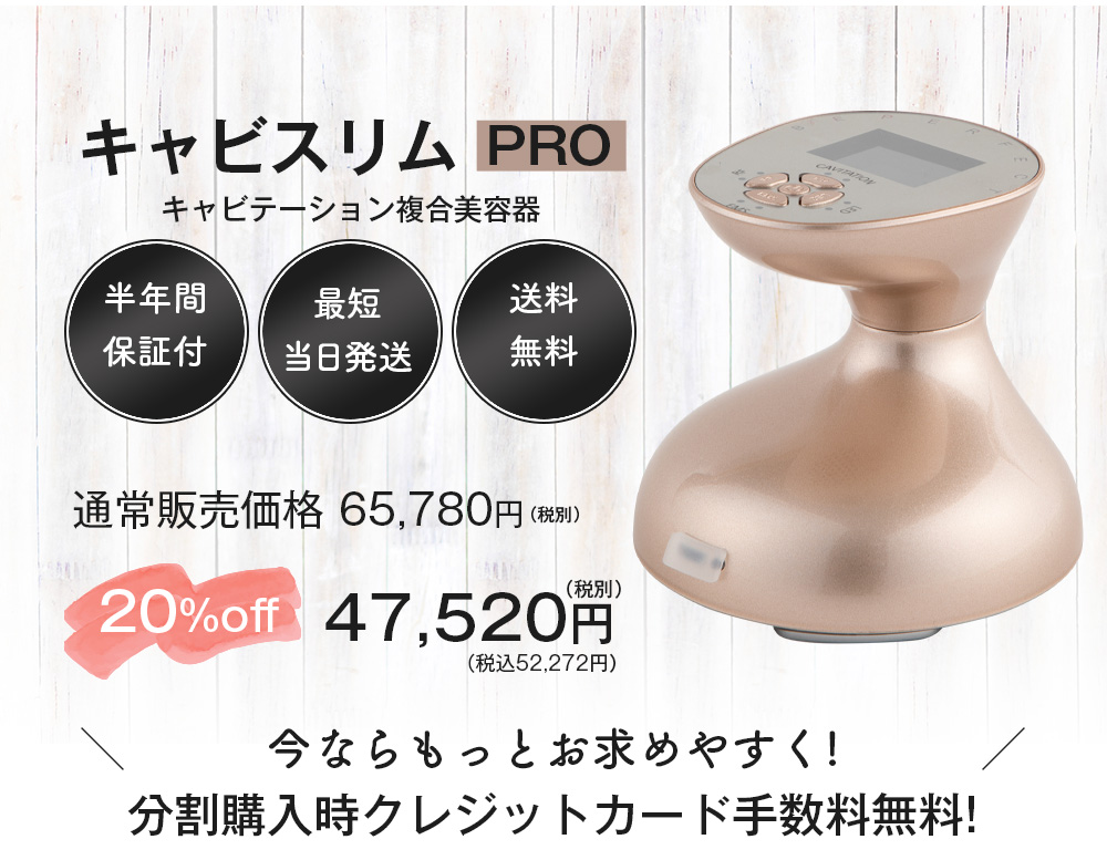 さてさて、キャビテーションにEMS、そしてRFやLEDの美肌ケアまでできるキャビスリムPROですが、公式ホームページから購入すると24回払いで毎月1980円(税別)というとんでもなくリーズナブルな価格で購入できるんです!